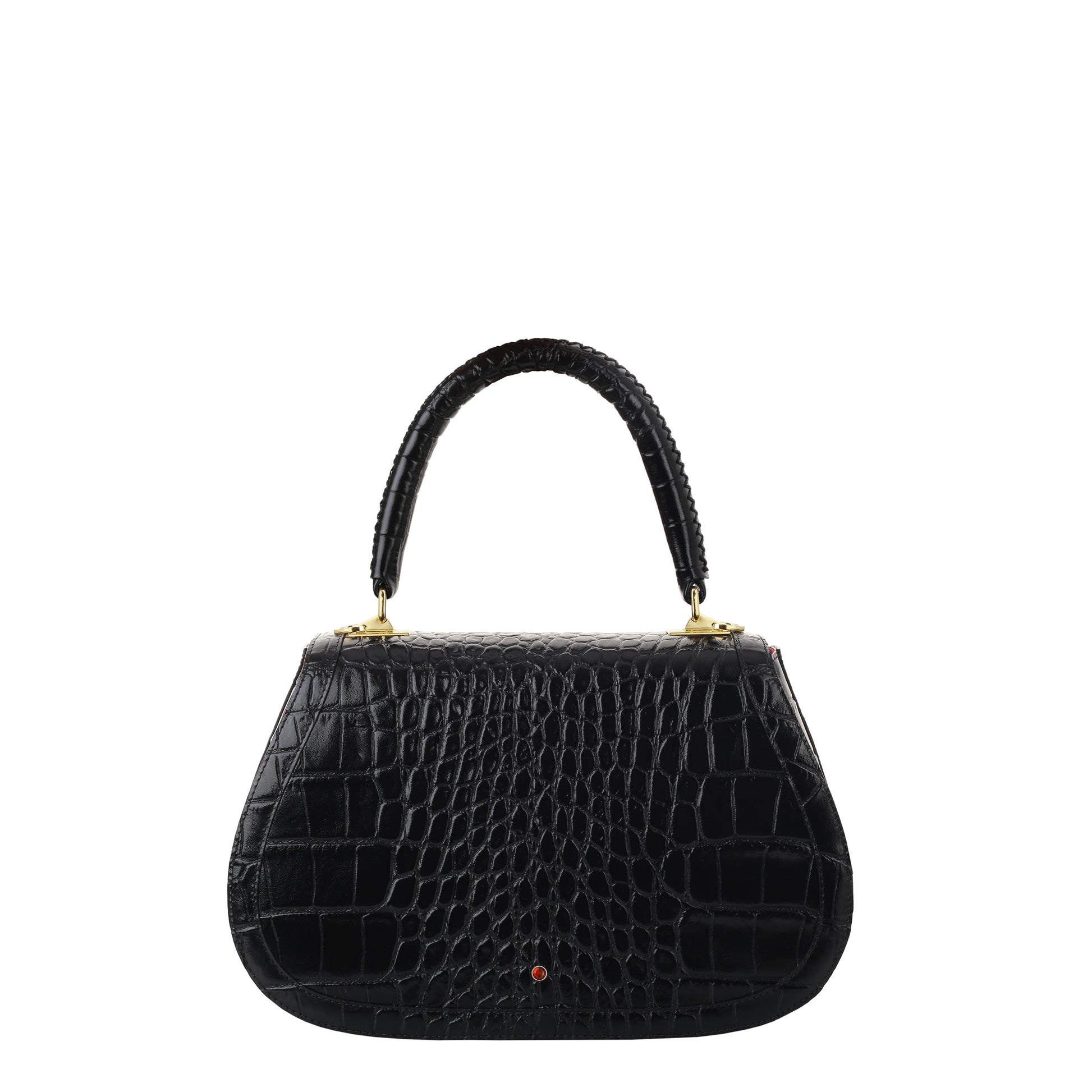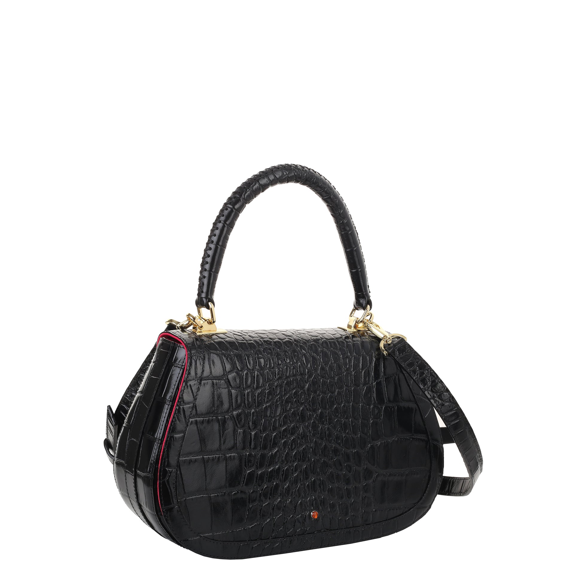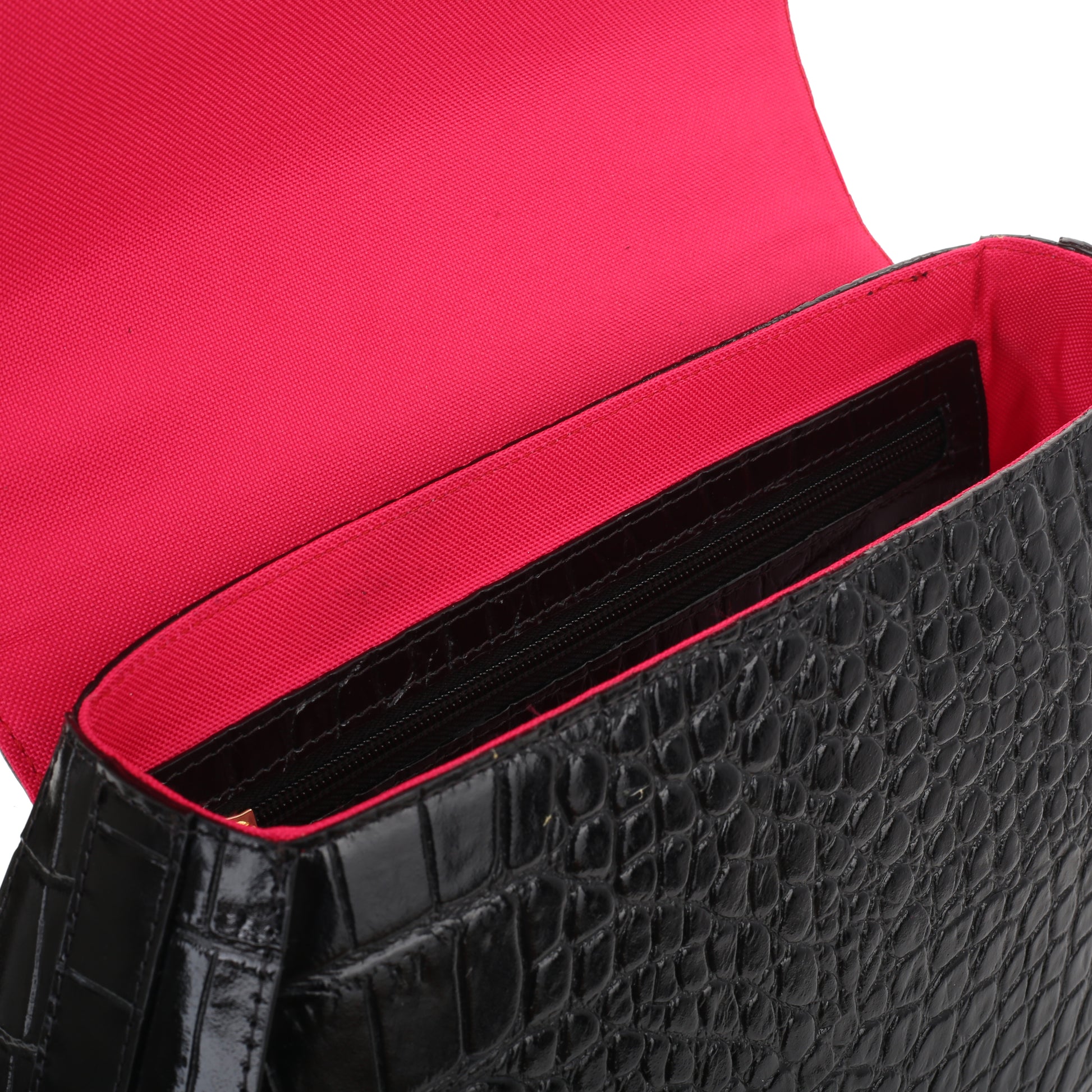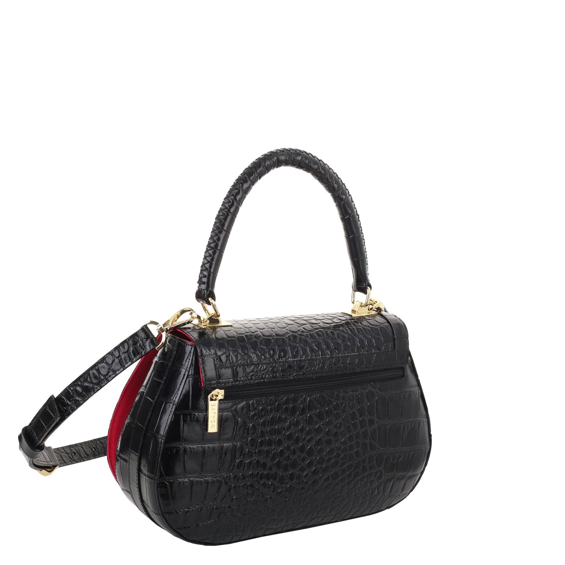 Die Edith-Tasche hat einen Magnetverschluss und dekorative Paspeln um die Klappe. Sie verfügt über einen verstellbaren Riemen und einen handgenähten Griff. Der Innenraum ist mit zwei Taschen versehen, eine davon in Form einer Kartentasche. Auf der Rückseite der Tasche befindet sich eine Tasche mit Reißverschluss. Aufgrund seiner Größe und einzigartigen Form eignet es sich sowohl für das Tages- als auch für das Abendstyling. Es wird das notwendige Zubehör erfolgreich unterbringen. Die Tasche ist praktisch und unverzichtbar in der Garderobe jeder Frau.