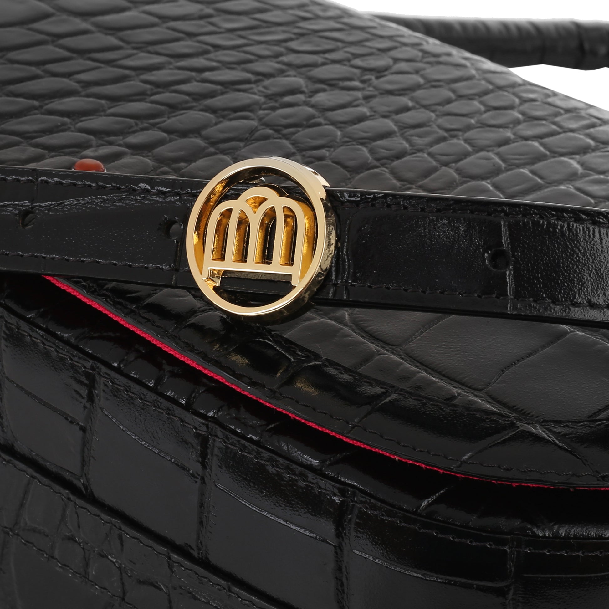 Die Tasche ist mit einer bernsteinfarbenen Öse signiert.