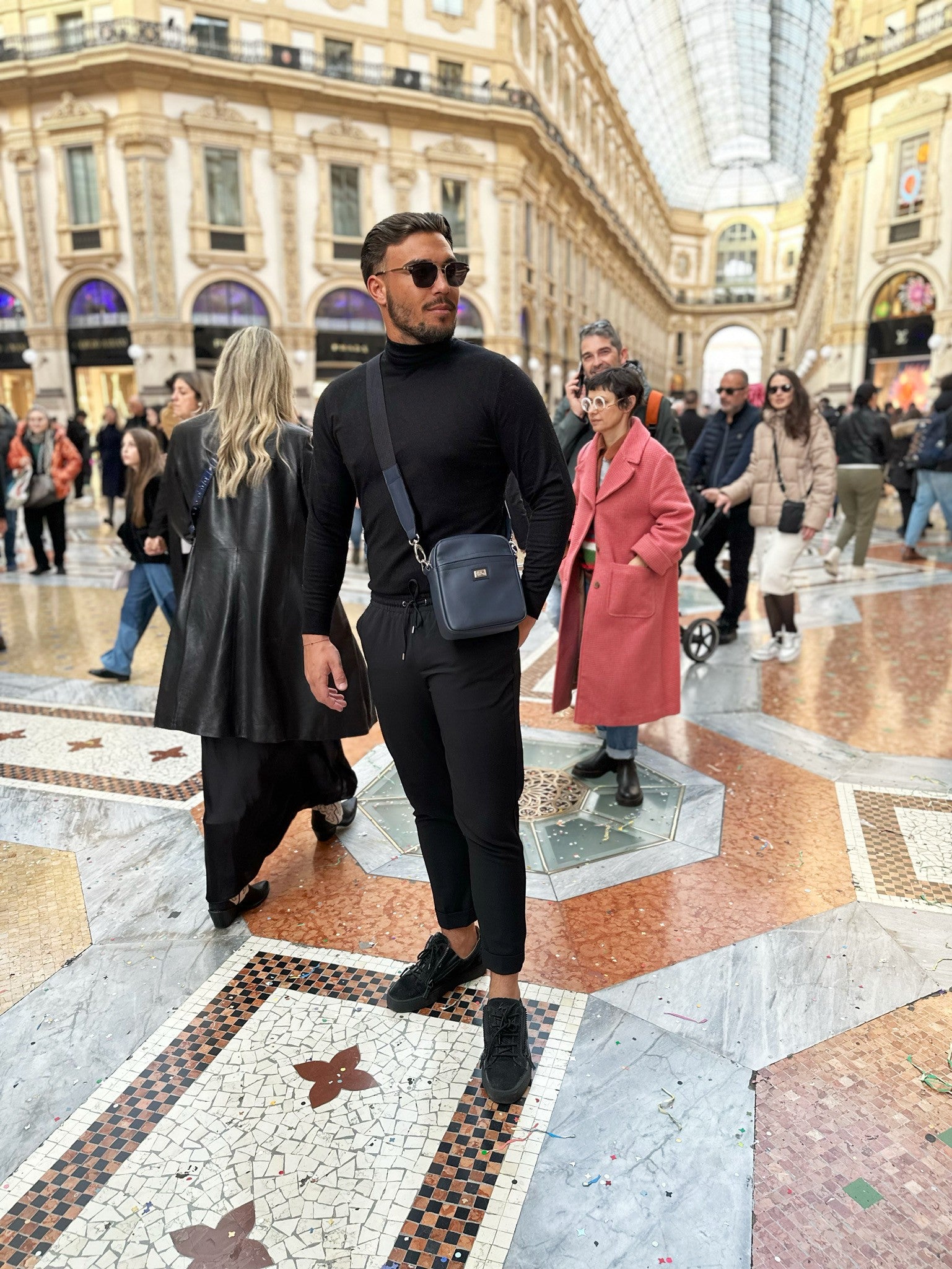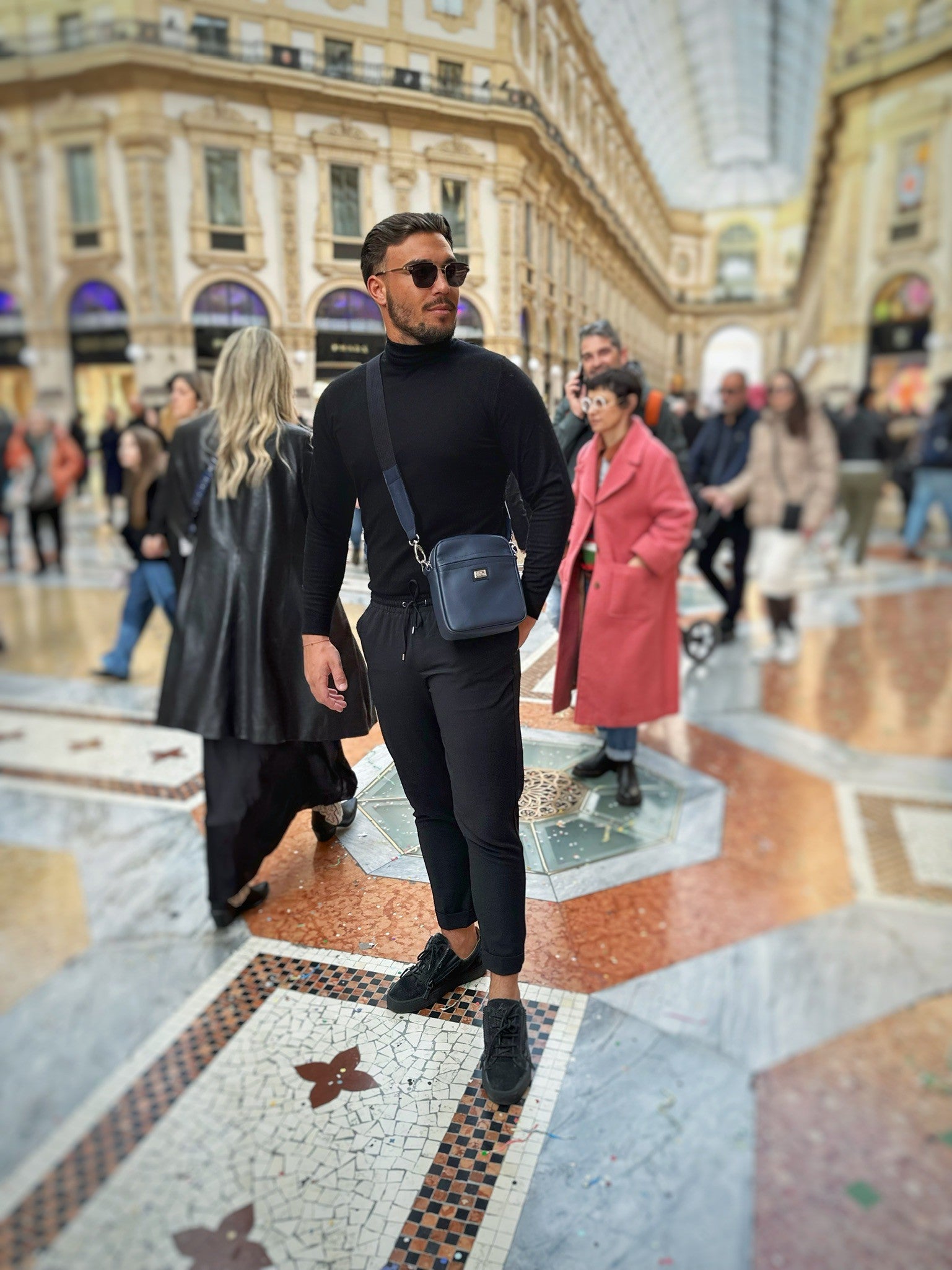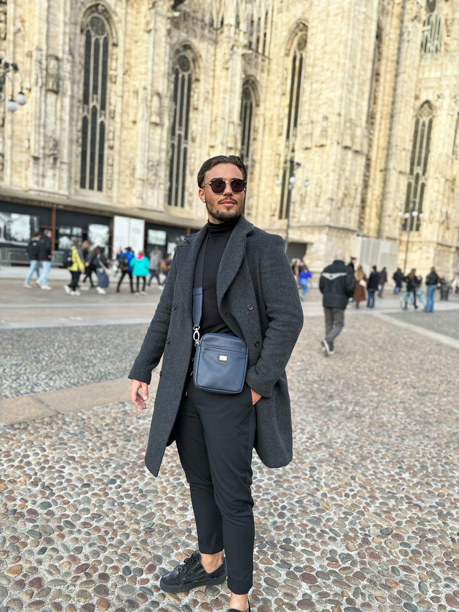 Herrentasche mit Reißverschluss. Zusätzlich gibt es außen eine praktische Tasche. Es verfügt über einen verstellbaren Gurtband. Im Inneren befinden sich eine Reißverschlusstasche und eine Handytasche. Perfekt für den täglichen Gebrauch und unverzichtbar auf Reisen.