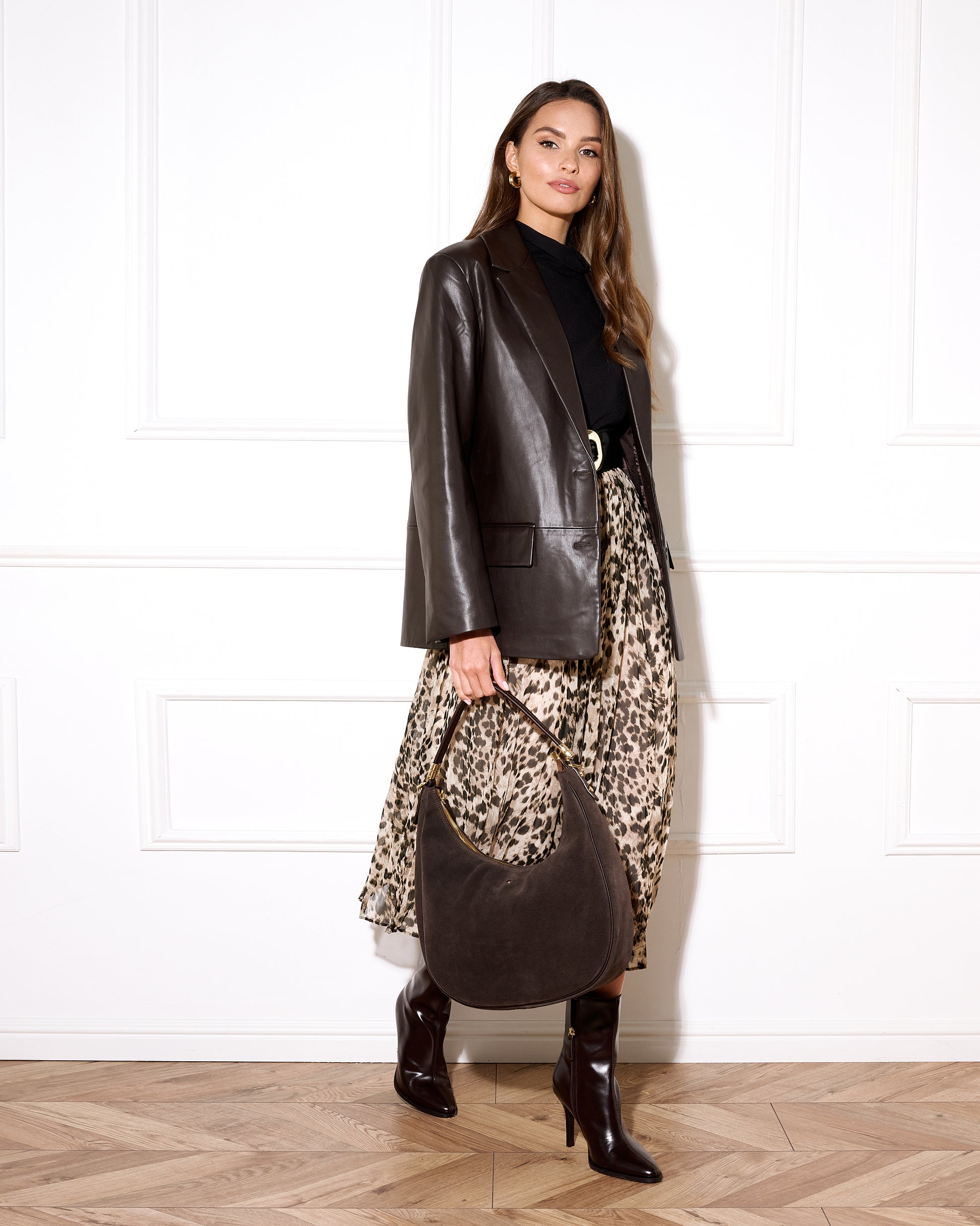 Torebka Draco small wykonana ze skóry naturalnej, przygotowanej dla nas przez Włoskich mistrzów garbarstwa. Zapinana na zamek, z odpinaną rączką na ramię. Wewnątrz znajdują się dwie kieszonki w tym jedna zapinana na zamek. Można ją nosić na dwa sposoby, co zmienia jej kształt. Pierwszy z przypiętą rączką pozwala wygodnie założyć ją na ramie, drugi otrzymany po jej spięciu i odłączeniu rączki sprawia, że torebka staje się zgrabnym półksiężycem. Z tyłu posiada wygodną kieszeń, zapinaną na zamek oraz odpinany długi pasek. Wygodna i stylowa sprawi, że codziennie będziesz czuła się wyjątkowo. Duża, wygodna, bardzo lekka i pakowna.