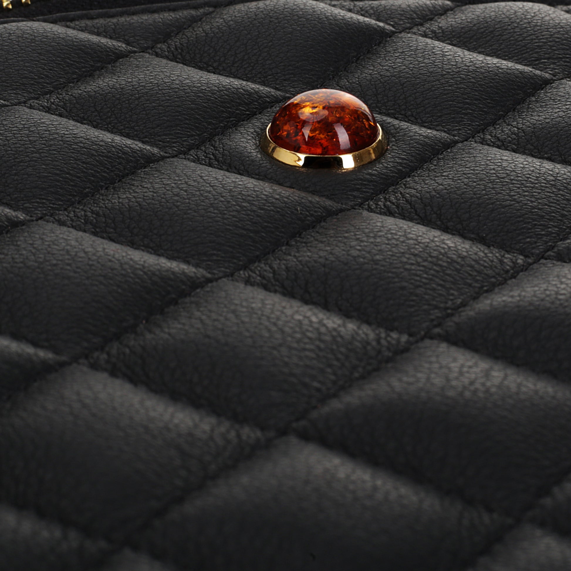 The large amber eyelet from the PRESTIGE collection is placed in a frame made of 24-carat gold or rhodium-plated silver. It is perfectly matched to the purchased product.