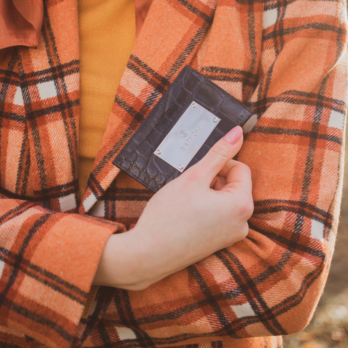 The business card holder is signed with a plaque with the BATYCKI sign.