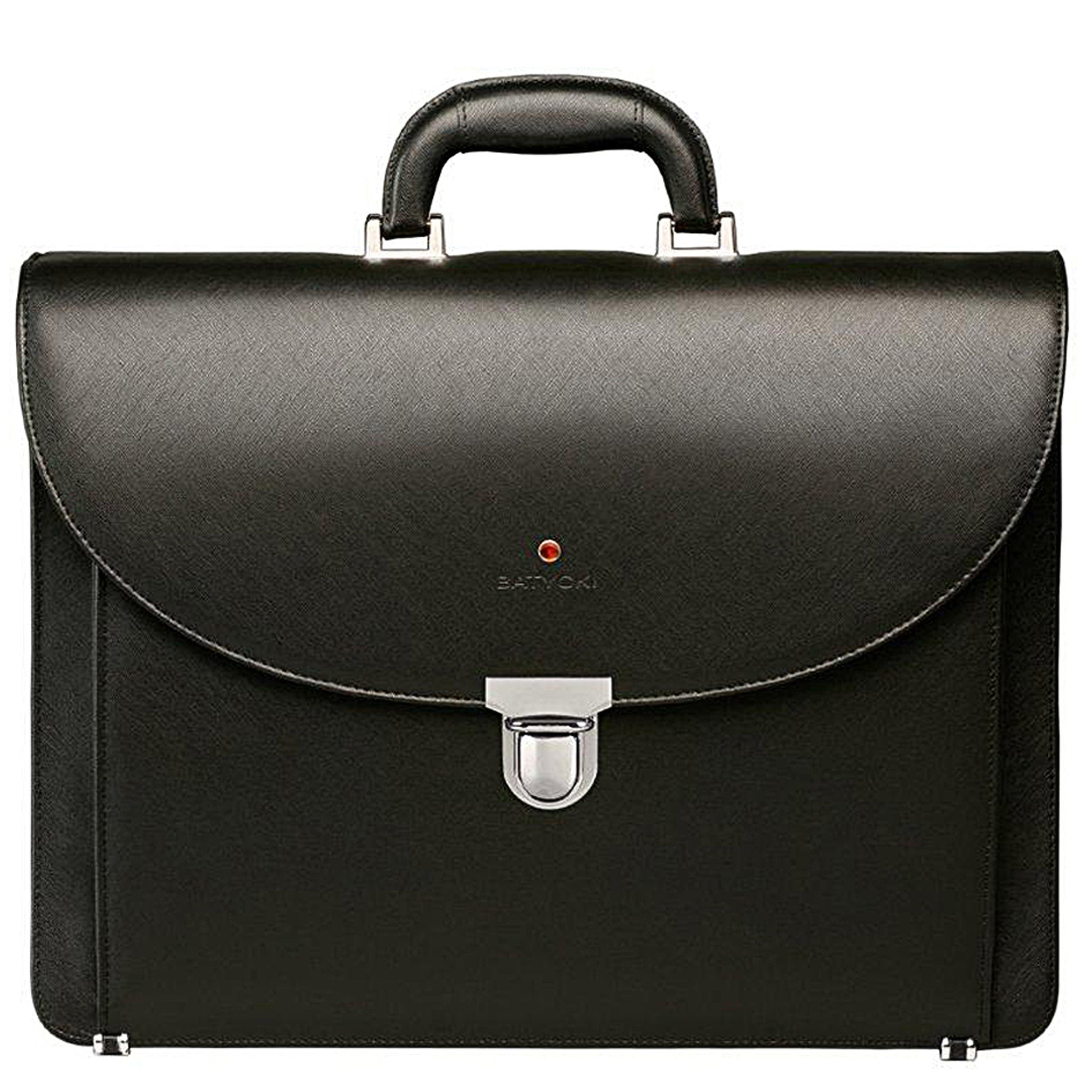 The briefcase has four compartments, space for pens and a phone. Additionally, it is equipped with a zippered pocket.