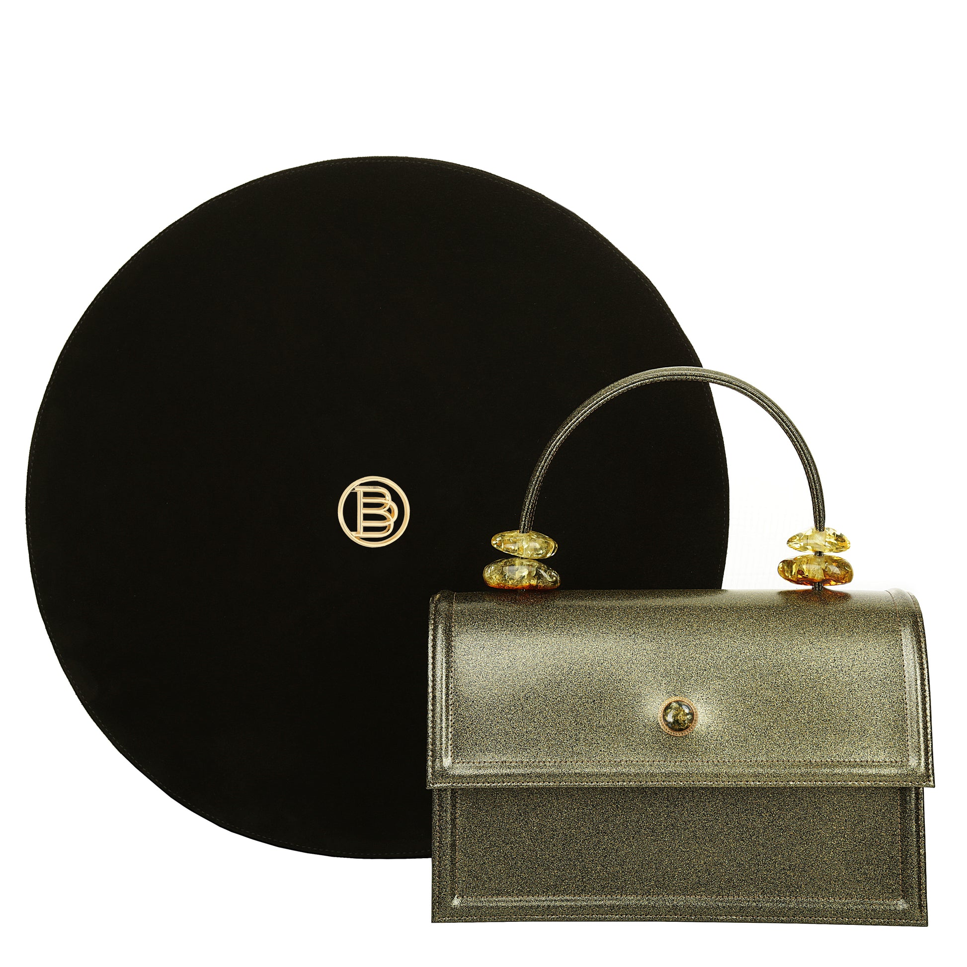 The bag is signed with a large amber eyelet in a 24-carat gold-plated frame.
