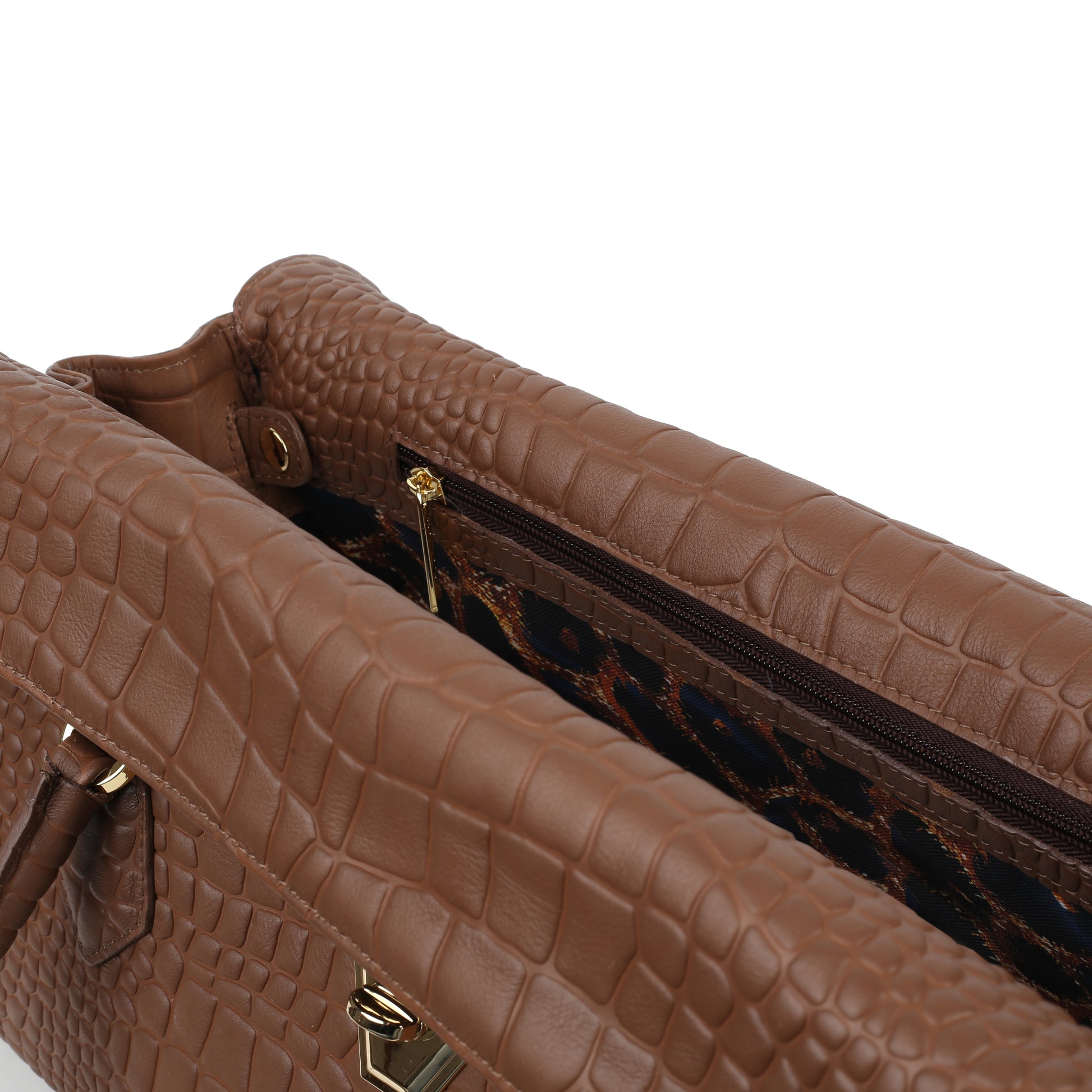 The Lea bag is made of natural leather, prepared for us by Italian master tanners. The front flap is decorated with an elegant twist-lock clasp. Inside, there is a lining in original patterns with two pockets, including one with a zipper. The bag is soft and very roomy. Its unique shape and original form will be the perfect complement to any styling. Ideal for women who value comfort and functionality.