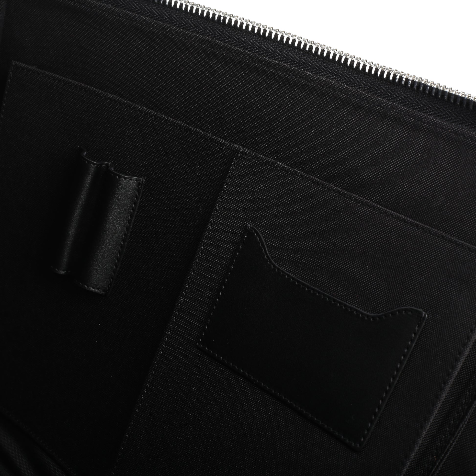Teczka na dokumenty posiada dwie wewnętrzne kieszenie i jedną zewnętrzną, miejsce na długopisy i wizytówki.