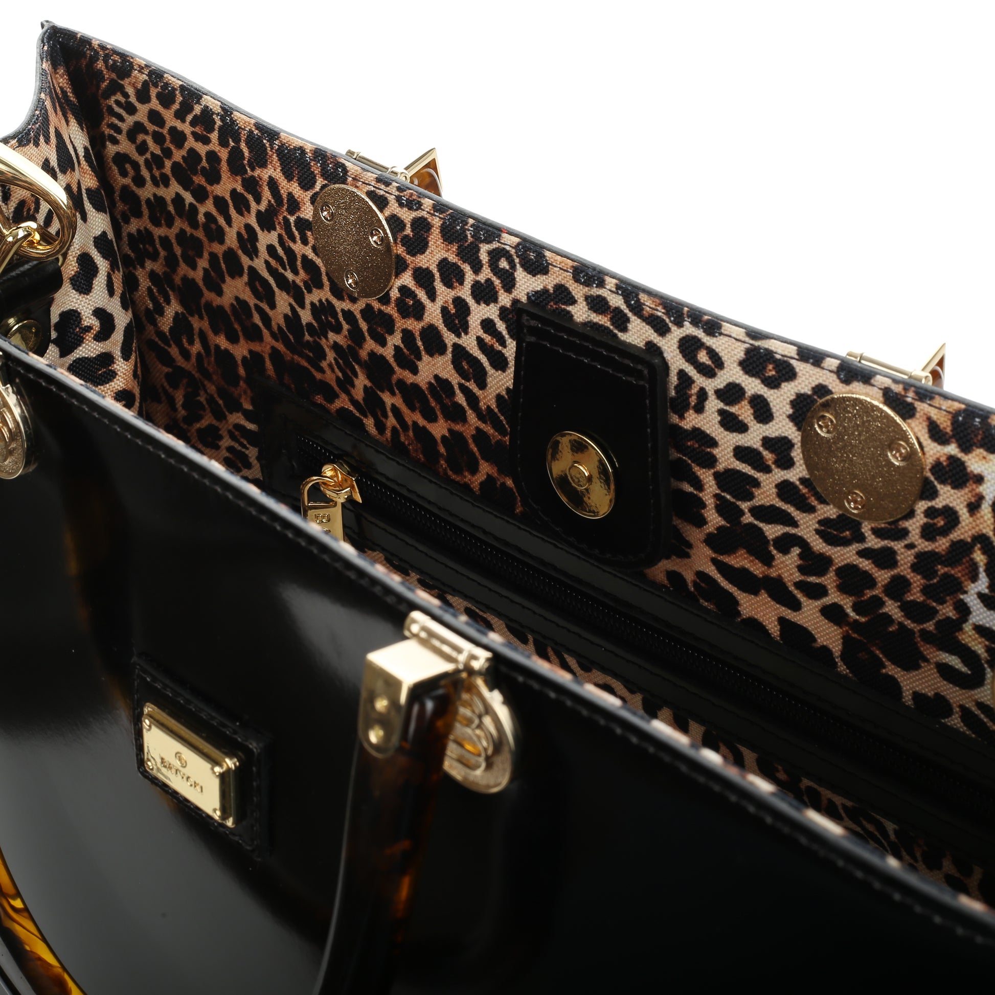 Torebka Ferri posiada dwie wewnętrzne kieszenie, w tym jedną zapinaną na zamek. Wyposażona jest w niezwykle funkcjonalny brelok do kluczy, Zapinana skórzaną patką, ozdobiona efektownymi rączkami wykonanymi z plastiku, który w wyglądzie przypomina bursztyn. Torebka posiada dodatkowo odpinany, długi pasek. Duża i pojemna, niezbędna w szafie każdej kobiety. Ten niezwykle efektowny model doda Twojej stylizacji wyjątkowego szyku i elegancji.