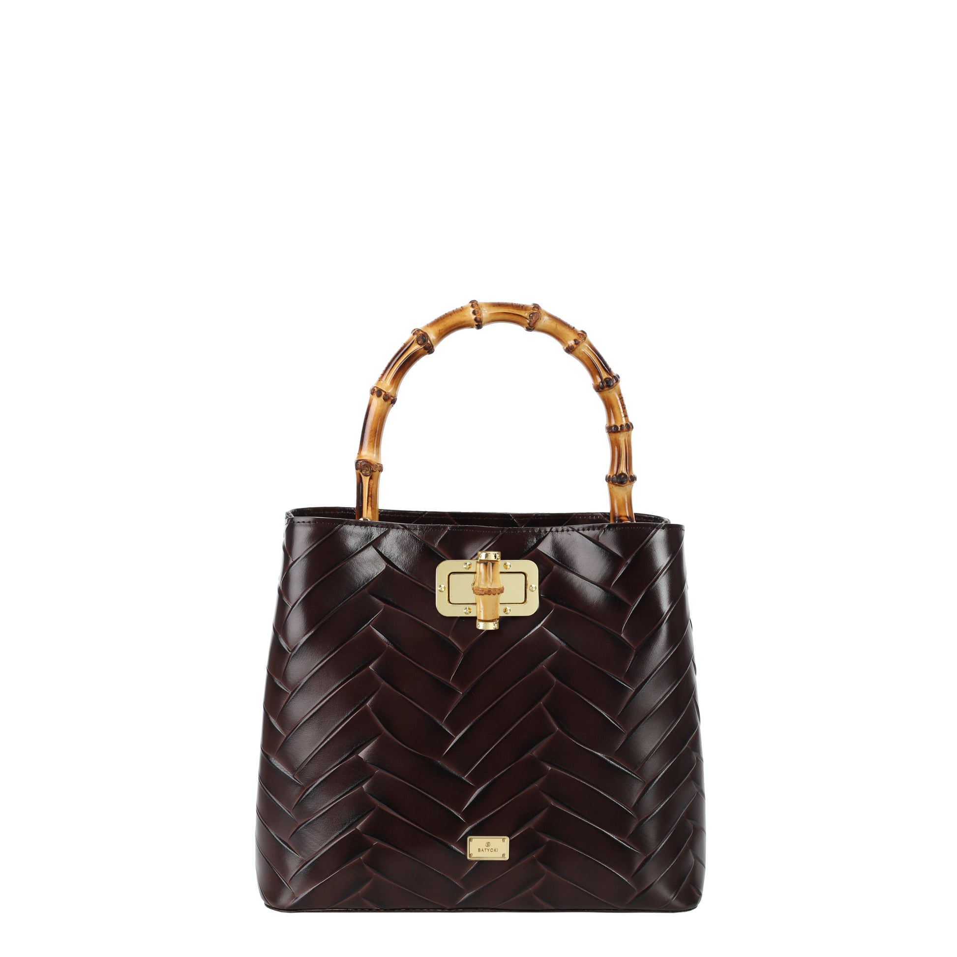 Torebka Stella wykonana ze skóry naturalnej przygotowanej dla nas przez Włoskich mistrzów garbarstwa. Posiada dwie przegrody i trzy kieszonki w tym jedna zapinana na zamek. Wyposażona jest w niezwykle funkcjonalny brelok do kluczy. Zapinana ozdobną przekrętką z bambusowym elementem pasującą do efektownej, bambusowej rączki. Niezwykle elegancka i praktyczna sprawi, że codziennie będziesz czuła się wyjątkowo.