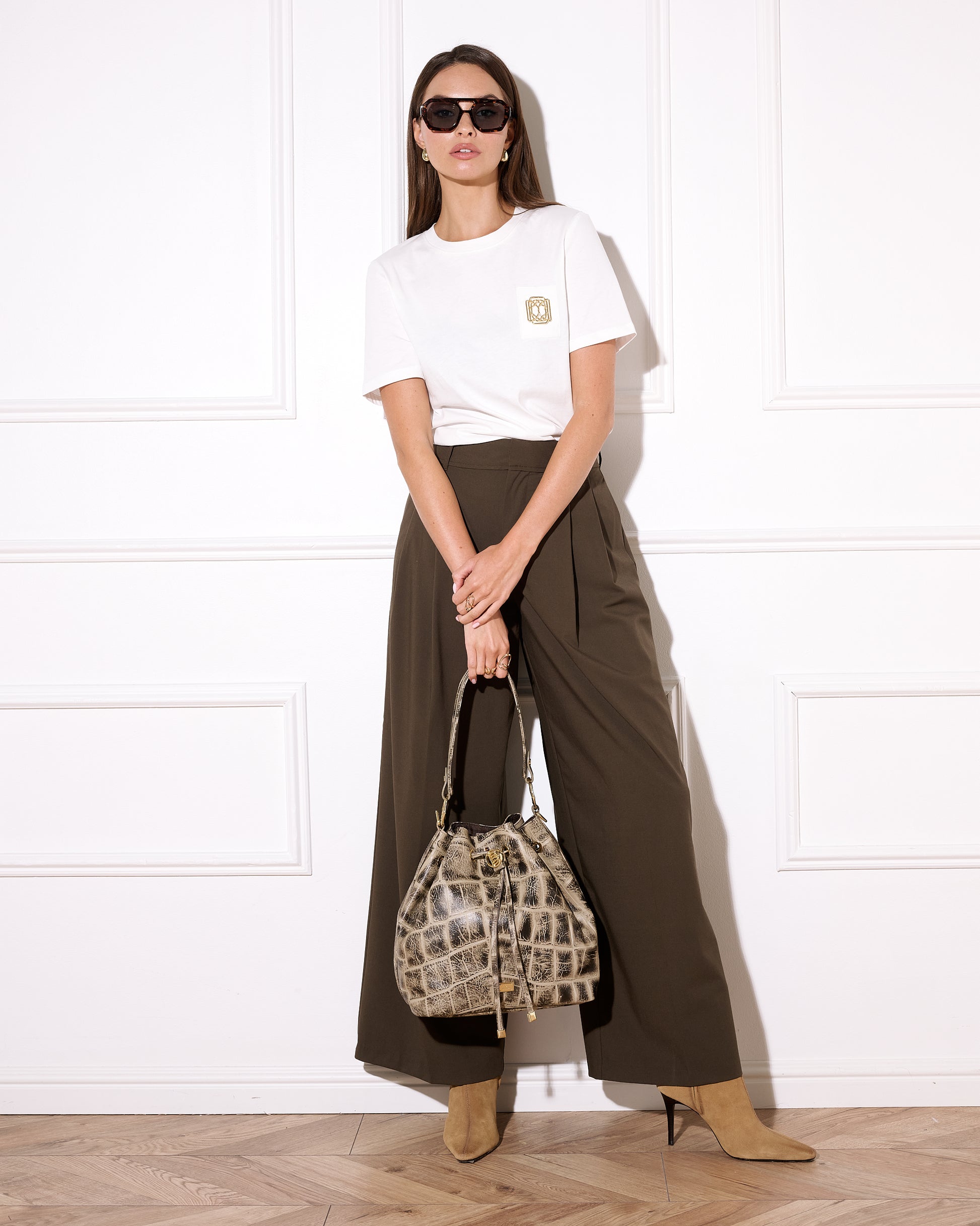 Torebka została uszyta ręcznie w Polsce, w zakładzie kaletniczym z wieloletnimi tradycjami. Do jej wykonania użyto najwyższej jakości skóry naturalnej wyprodukowanej przez garbarnię przetwarzającą jedynie skóry stanowiące odpady z europejskiego przemysłu spożywczego.